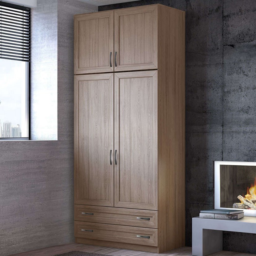 The Double Wardrobe with Loft is an excellent choice for modern and classic bedrooms, thanks to its simple design and beautiful color! It is a modern and timeless wardrobe, made of high-quality melamine. It features two spacious compartments, two large drawers, and a loft with two doors, so you can have everything perfectly organized. The product is delivered unassembled. Quality: Melamine Dimensions: 1 Wardrobe: Length: 102 cm, Width: 60 cm, Height: 233 cm