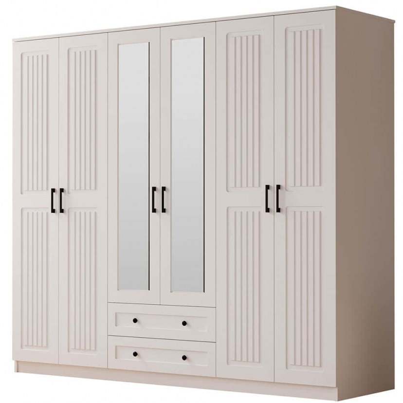 Η Εξάφυλλη Ντουλάπα 167RAB1184 αποτελεί ιδανική επιλογή για όσους αναζητούν έναν συνδυασμό κομψότητας και πρακτικότητας στο περιβάλλον τους. Με μοντέρνο σχεδιασμό σε καθαρές γραμμές και φωτεινό φινίρισμα, ενσωματώνεται εύκολα σε κάθε υπνοδωμάτιο ή ξενώνα. Διαθέτει έξι πόρτες, προσφέροντας θέσεις για κρεμάστρες, ράφια και αποθηκευτικά διαμερίσματα, κατάλληλα για ρούχα, λευκά είδη ή προσωπικά αντικείμενα. Η στιβαρή κατασκευή της εγγυάται ανθεκτικότητα στον χρόνο, ενώ η εργονομική της διάταξη διευκολύνει την καθημερινή χρήση. Το προϊόν παραδίδεται αμοντάριστο.