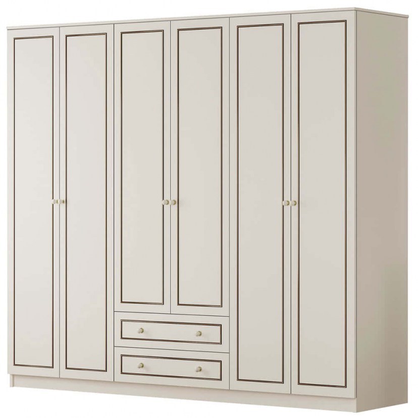 Αναβαθμίστε τον χώρο σας με την Εξάφυλλη Ντουλάπα 167RAB1189, ένα έπιπλο που συνδυάζει κομψότητα και απόλυτη λειτουργικότητα για την οργάνωση των ρούχων σας. Κατασκευασμένη από μοριοσανίδα και μελαμίνη, είναι ανθεκτική στην υγρασία και τις γρατσουνιές, ενώ εγγυάται μακροχρόνια αντοχή. Η ντουλάπα διαθέτει έξι πόρτες και δύο συρτάρια, προσφέροντας εύκολη πρόσβαση και αποθήκευση. Εσωτερικά, διαθέτει ράγες για κρεμάστρες και ράφια για τα αξεσουάρ και τα προσωπικά σας αντικείμενα. Το προϊόν παραδίδεται αμοντάριστο.