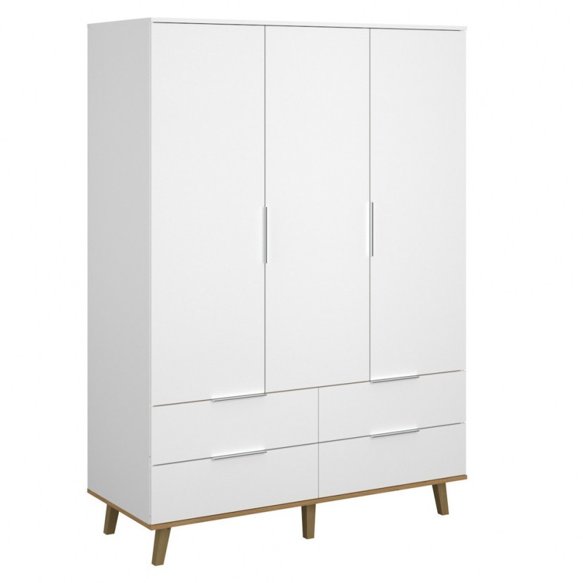 A stylish choice of furniture for a more modern bedroom is the Neptune Three-Layer Wardrobe TO-NEPTUNE3D4S. It has three cupboards, two include a rail for hanging clothes, the third leaf has three shelves. Also, the furniture consists of four drawers for additional storage space and four wooden legs for better support. A practical solution for decorating and organizing your space, which will offer elegance and timelessness. Delivered unassembled and with detailed assembly instructions.