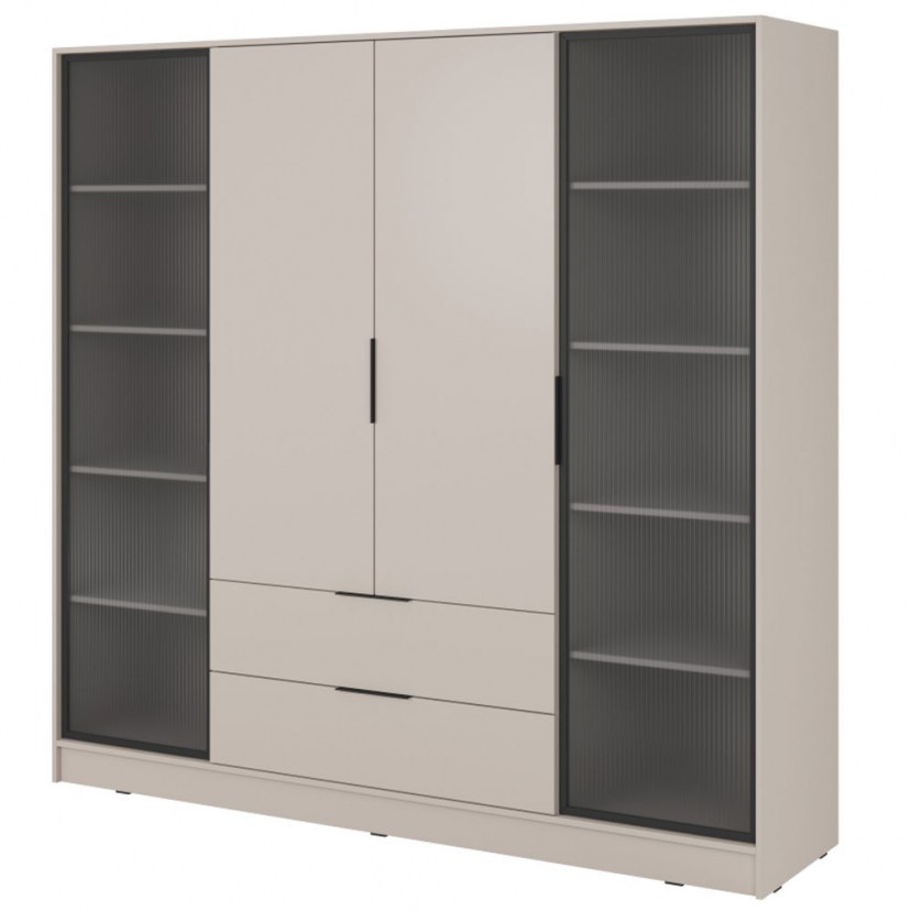 Kelly Flutes RD Four-Door Wardrobe With Semi-Transparent Glass 206x51x200cm White Champagne