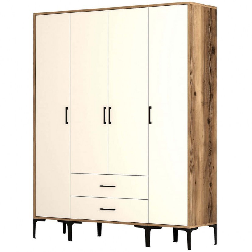 Four Door Wardrobe Kumsal 845HCT5481 160x47,5x201,4cm Walnut-Cream