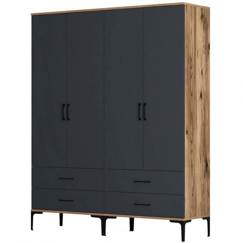 Four-Leaf Wardrobe Kumsal 845HCT5484 160x47,5x201,4cm Walnut-Anthracite