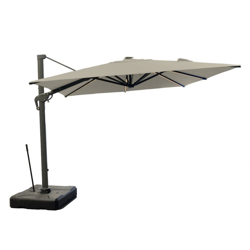 Η Επαγγελματική Γωνιακή Ομπρέλα Roma/C Deluxe 01-00-2849 συνδυάζει σύγχρονο σχεδιασμό και προηγμένη λειτουργικότητα, αποτελώντας ιδανική επιλογή για απαιτητικούς εξωτερικούς χώρους. Διαθέτει στιβαρό σκελετό αλουμινίου με μονοκόμματο ιστό 100x60x2,2mm και 8 ακτίνες 33x20x1,2mm, ενώ η λειτουργία κάθετης κλίσης πολλαπλών θέσεων (tilt αριστερά-δεξιά) προσφέρει ευελιξία στη σκίαση. Ενσωματώνει ηλιακά φώτα με πακέτο τροφοδοσίας και καλώδιο μπαταρίας για ατμοσφαιρικό φωτισμό. Συνοδεύεται από τη βάση HFDZ-005 με περιστροφή 360°, ροδάκια και δυνατότητα γεμίσματος (έως 170kg με άμμο). Το ακρυλικό ύφασμα 250g/m² με επικάλυψη PA και UV προστασία διασφαλίζει αντοχή και μακροχρόνια χρήση.