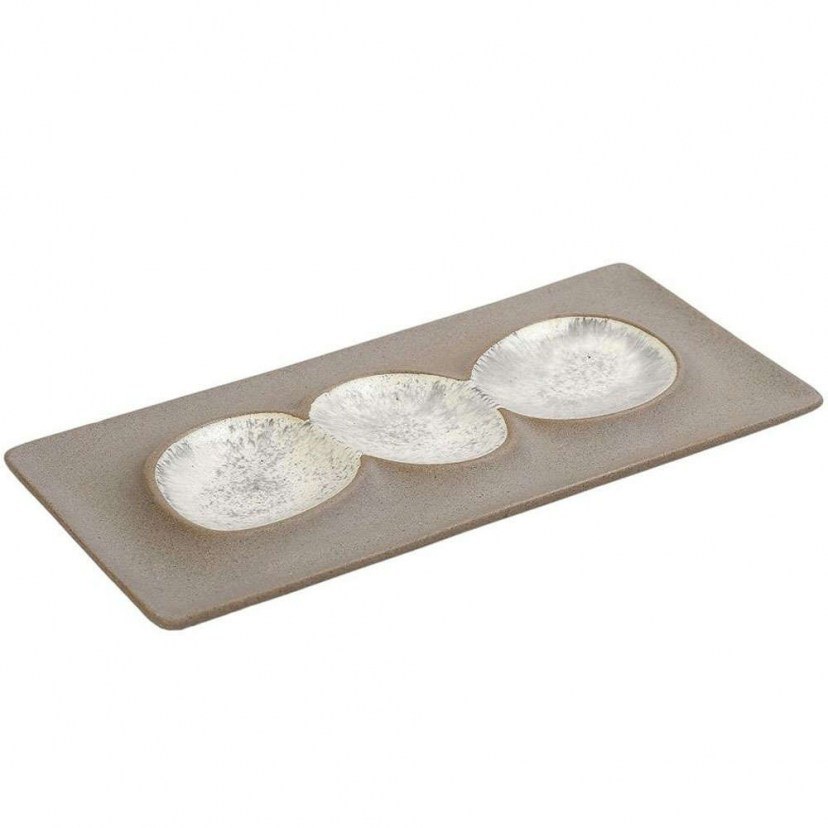 Η Ορντεβιέρα 3 θέσεων Spirit NIC706K2 είναι ιδανική για να σερβίρετε ξηρούς καρπούς, φρούτα, γλυκά, σάλτσες, ντιπ και άλλα λιχουδιές. Σας μεταφέρει σε υψηλή γαστρονομική απόλαυση, συνδυάζοντας παράδοση και καινοτομία στο art de la table. Η ορντεβιέρα αυτή έχει σχεδιαστεί με έναν συνδυασμό ματ και γυαλιστερού υαλώματος, ενώ οι ιδιαίτερες φόρμες και υφές της την καθιστούν μια πηγή έμπνευσης. Η κατασκευή από υψηλής ποιότητας stoneware εξασφαλίζει την αντοχή του προϊόντος και διασφαλίζει την ποιότητα για επαγγελματική χρήση. Επιπλέον, είναι ασφαλής για πλυντήριο πιάτων, μικροκυμάτων και τρόφιμα.