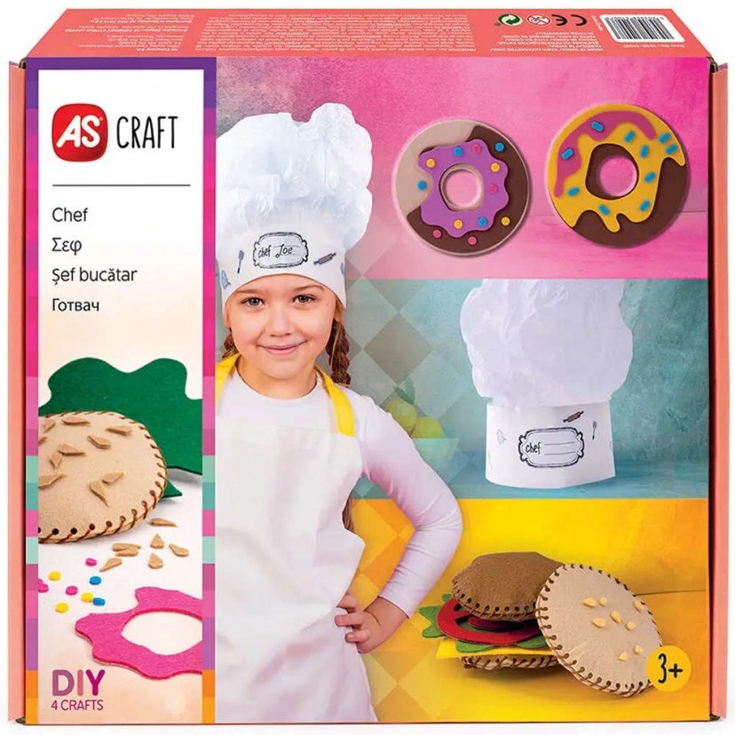 With the DIY Craft Chef Paper Cutting Game With 4 Crafts 1038-31007, children will create their own accessories and feel like real chefs. The chef hat gives the feeling that your child is in a professional kitchen. It is a wonderful opportunity for children to express their creativity and enjoy the role of a chef. The soft and safe materials used are safe for children, while also providing a pleasant touch. DIY Crafts: 1 chef hat, 2 donut coasters, 1 burger. Suitable for children aged 3+.