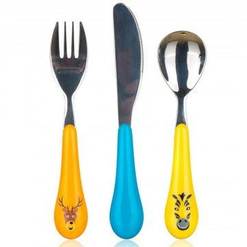 Find the best Kids Cutlery at designdrops and make mealtime a fun and comfortable experience for your little one. With individual forks, spoons and knives, as well as complete sets, our children's cutlery is designed for comfort, cleanliness and style. All our cutlery is made of certified and safe materials for children, ensuring their absolute safety and health. Specially designed children's cutlery with ergonomic handles make it easy for little hands to hold and use, offering comfort and convenience. Durable and safe forks in cheerful colors and designs. Ergonomically designed spoons that are perfect for little hands. Safe and easy-to-use knives, ideal for children's first steps in using cutlery. You will find all this at designdrops at unbeatable prices! You can combine them with children's glasses, children's plates and bowls and children's food sets from our collection!