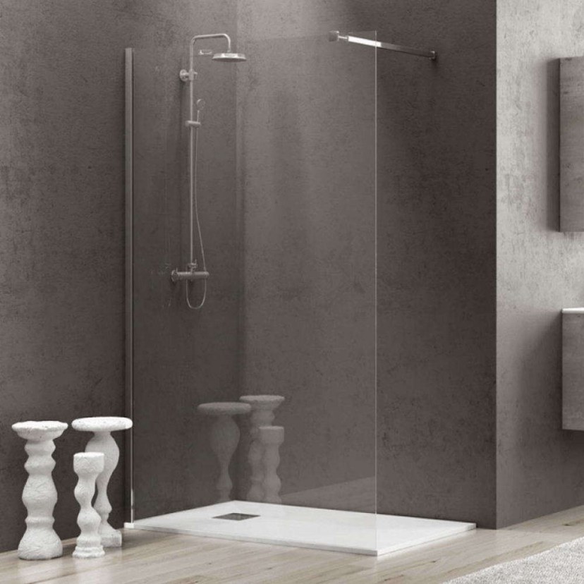 The Fixed Walk-in Shower Panel 1 features a sturdy frame made of anodized aluminum and a synthetic crystal sealing profile for the floor. It includes a metal floor stabilizer and an 8mm thick safety glass surface. It includes a large telescopic rod measuring 70-120 cm and offers the possibility of inversion. For cleaning the metal parts of the cabin, use only water and a soft cloth.