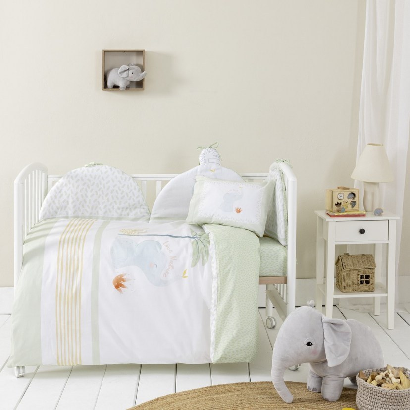 Θέλετε να δημιουργήσετε το ιδανικό περιβάλλον για τον ύπνο του παιδιού σας; Η Πάντα Κούνιας Nature's Kiss είναι μία καταπληκτική επιλογή. Ο έξυπνος σχεδιασμός διπλής όψεως με το τυπωτό πάνελ και το γλυκό ελεφαντάκι θα ξετρελάνει το παιδί σας. Θα εκτιμήσετε την υποαλλεργική και αντιστατική δράση του 100% βαμβακερού υφάσματος 144TC, το οποίο σε συνδυασμό με την πλούσια γέμιση βάτας δημιουργεί ένα προστατευτικό και απαλό περιβάλλον για το μωρό.