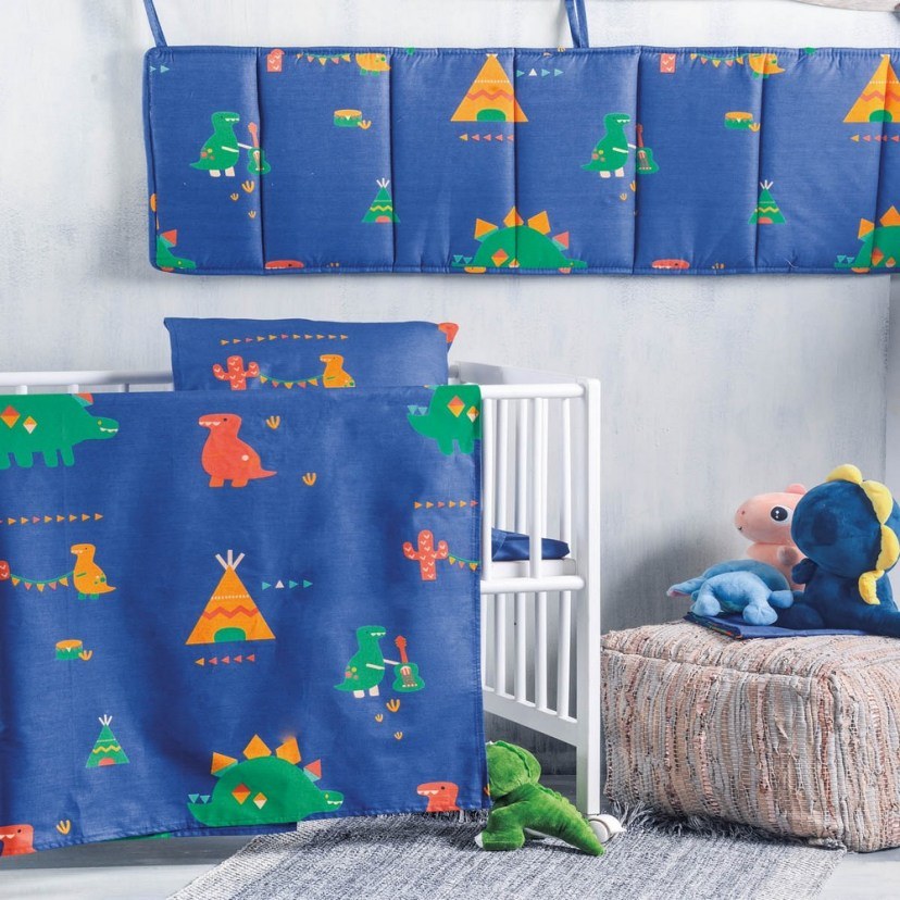 The Tobias Baby Quilt is a favorite choice for children, thanks to its playful design with dinosaurs visiting the Indian village. It is a high-quality quilt, with a rich and fluffy filling and a cotton lining, ensuring softness and warmth for your little angel.