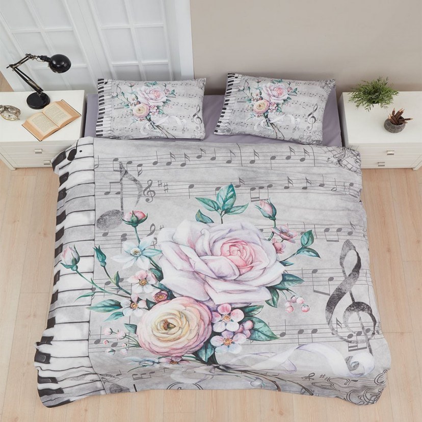 Spread the Melody Duvet Set on your bed and ensure a pleasant morning wake-up in a bed with floral design and soft shades! It is a high-quality set, made of cotton poplin and includes a duvet cover and two pillowcases. Quality: 100% Cotton Poplin. Dimensions: 1 Super King Duvet Set: 1 Duvet Cover: 220x240 cm & 2 Pillowcases: 50x70 cm.