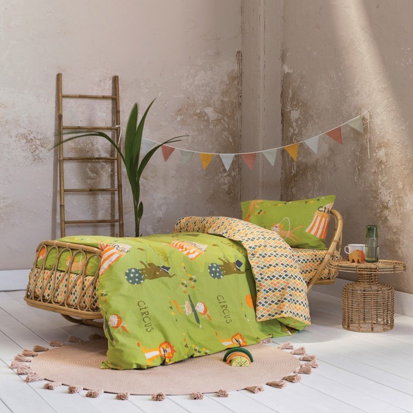The Children's Circus Bedding Set is ideal for boys and girls, as it is available in the happiest colors and features designs inspired by the wonderful world of the circus. It is a beautiful set, made of cotton, which is a pure, natural material that is absolutely friendly to your child's sensitive skin, hypoallergenic and thermoregulatory, as it allows the skin to "breathe".