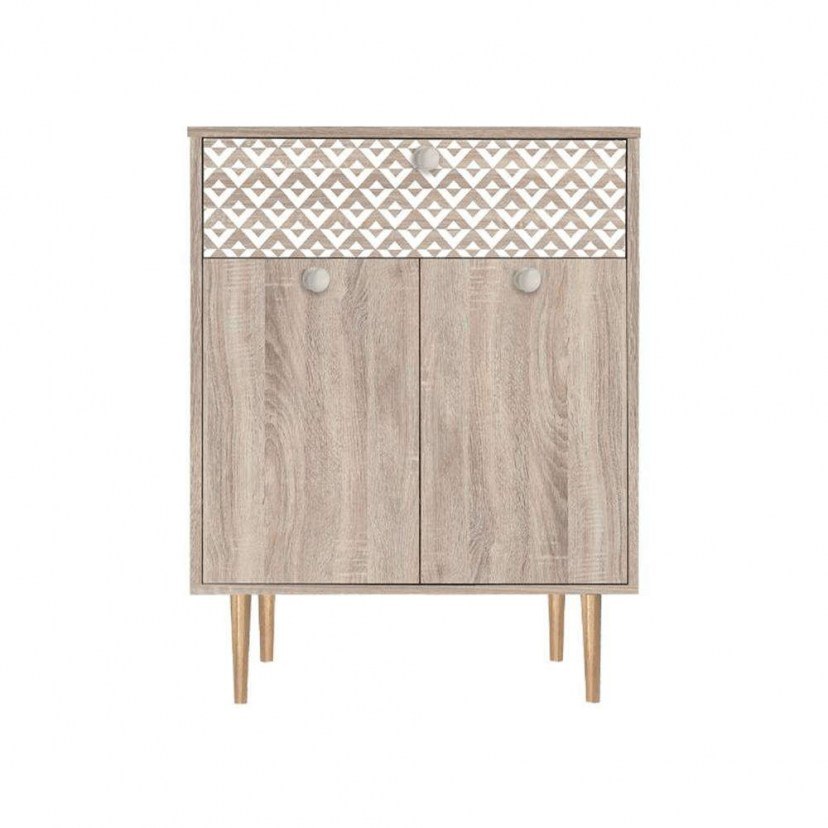 The Shoe Rack 271-121-041 is a modern and ergonomic piece of furniture, with a modern design and quality melamine construction. It has two cabinets with four shelves inside and has a drawer, where you can store various small items. The product is delivered unassembled in factory packaging. Quality: