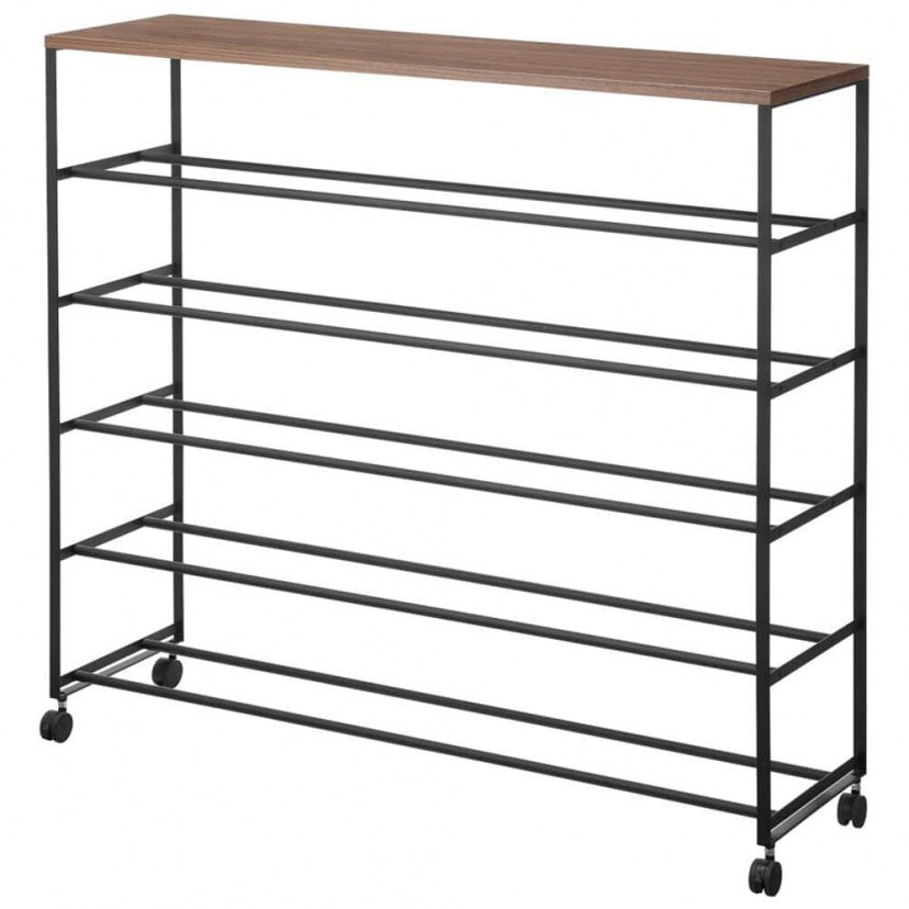 Οργανώστε τα παπούτσια σας με στιλ και πρακτικότητα χάρη στην Τροχήλατη Παπουτσοθήκη Tower, κατασκευασμένη από ανθεκτικό ατσάλι και ξύλο. Με 5 επίπεδα ραφιών, προσφέρει άφθονο αποθηκευτικό χώρο για έως και 20 ζευγάρια παπούτσια, ενώ η ξύλινη επιφάνεια στο πάνω μέρος μπορεί να χρησιμοποιηθεί για επιπλέον αντικείμενα. Διαθέτει γάντζους-κλιπ στο πλάι για ομπρέλες ή κόκκαλα παπουτσιών, και με μέγιστο φορτίο 3 kg ανά επίπεδο, συνδυάζει αντοχή, λειτουργικότητα και κομψό design για κάθε σπίτι.