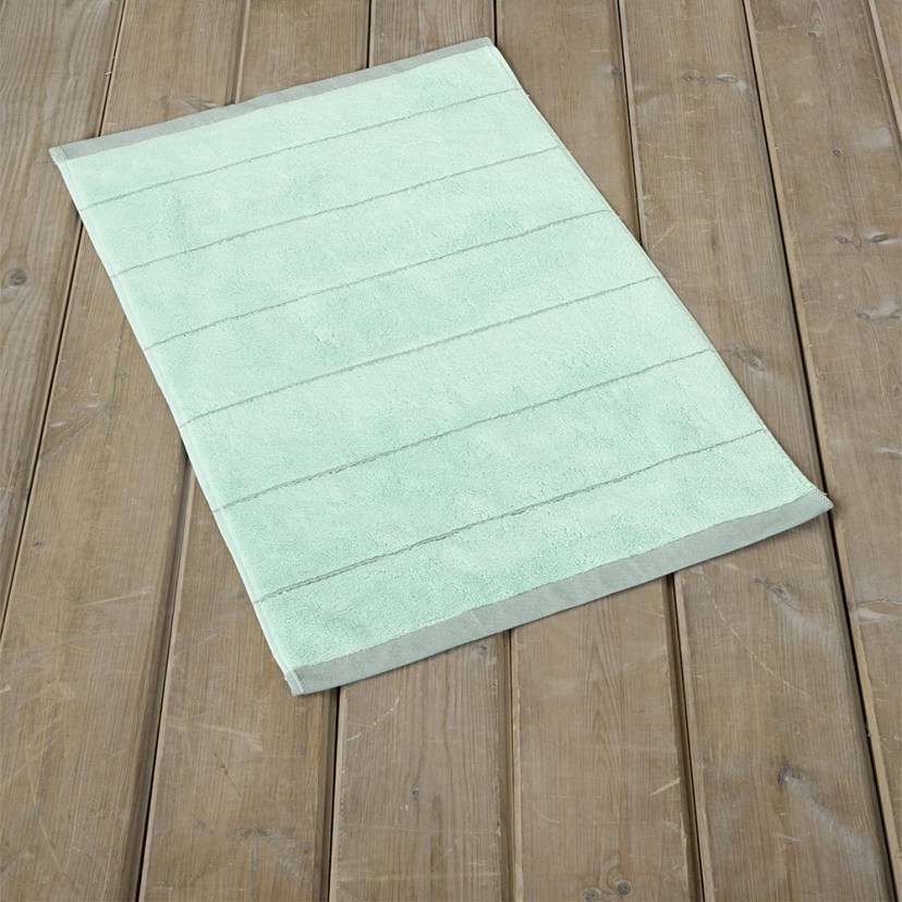 The Agua Bathroom Mat features a subtle striped design and is available in many modern shades, so you can choose the ones that best suit your bathroom! It is a cotton mat with a soft and fluffy pile, which is known for its absorbency and durability.