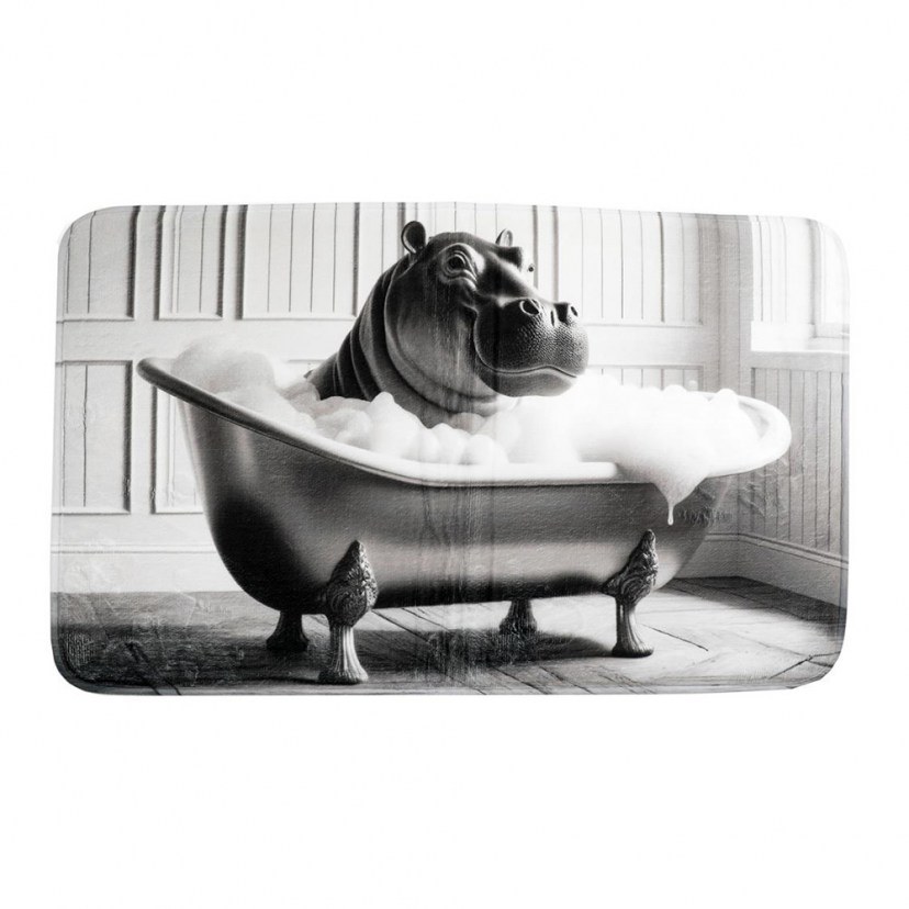 Discover the Hippo Bath Mat 014.BM0302, the ultimate statement accessory for your bathroom! Striking and whimsical, the design with a hippo enjoying its bath offers a unique and playful feel to your space. Ideal for those who want to add personality and humor to their bathroom decor. Made of high quality materials, it is durable and highly absorbent, offering comfort and functionality in every use.
