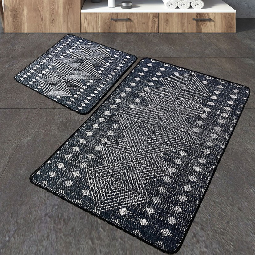 The Geesle Bath Mat Set includes two mats with an impressive design, inspired by ethnic aesthetics and designed with the most modern shades. Made from polyester, these mats offer ultimate comfort and luxury with their 10mm pile height, making them incredibly soft and gentle on your feet. They have antibacterial properties and a non-slip bottom, ensuring a healthy and safe space for you and your family. Ideal for everyday use, they are easily machine washable at 30°C for endless freshness and comfort.