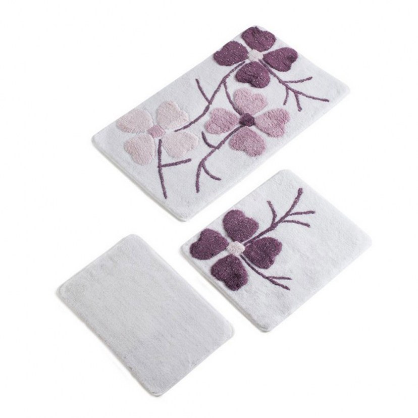 The Kircicegi Bath Mat Set includes three mats of different sizes with an elegant and modern design, highlighting an embossed floral pattern. This floral design offers a sense of freshness and elegance, ideal for adding a calm and elegant atmosphere to your bathroom. They are made from high-quality acrylic yarns to offer unparalleled softness and comfort underfoot, while the 18-30mm instep height ensures a soft feel with every step. Their non-slip base offers extra safety, preventing accidents and ensuring stability, while their antibacterial properties keep your bathroom clean and hygienic. You can wash them in the washing machine at 30°C. You'll find it in two great color combinations, so you can choose your favorite!