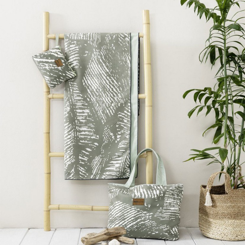 The Bali Beach Towel is the ideal choice for those looking for elegance, practicality and quality from their towel. With 100% microfiber composition and Quick Dry technology, it is extremely light, absorbent and easy to carry. Its unique abstract design, inspired by palm branches, exudes exotic elegance and minimal aesthetics. Thanks to the elastic loop, it is easily folded for convenient transport.