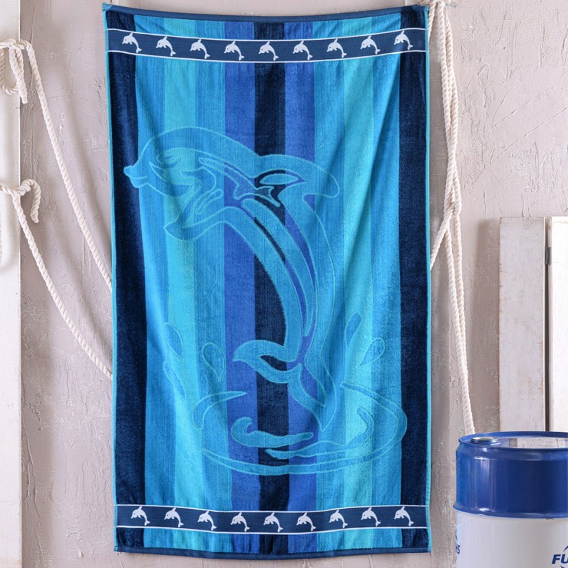 The Joy Velvet Beach Towel "smells" good weather, thanks to the playful dolphin design on the striped background and the lovely light blue and blue hues. Made from high-quality Egyptian cotton, the towel has a wonderful velor texture that makes it soft and absorbent, perfect for drying you off quickly and comfortably after a dip at the beach or pool. Its high quality construction ensures long-term strength and durability, so you can enjoy your towel on every summer adventure. Quality: