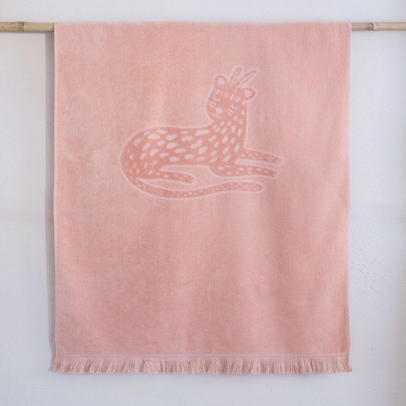 The Ilana Kids Beach Towel features a unique jacquard pattern that forms a leopard, creating a beach accessory that stands out for its cheerful and playful style. Made from cotton fabric with a velor treatment and Jacquard weave, the lovely towel is particularly soft and smooth in texture, thanks to its velor treatment. It is highly absorbent, as its inner side is towelette, ensuring a comfortable and cool feeling after bathing. Quality: