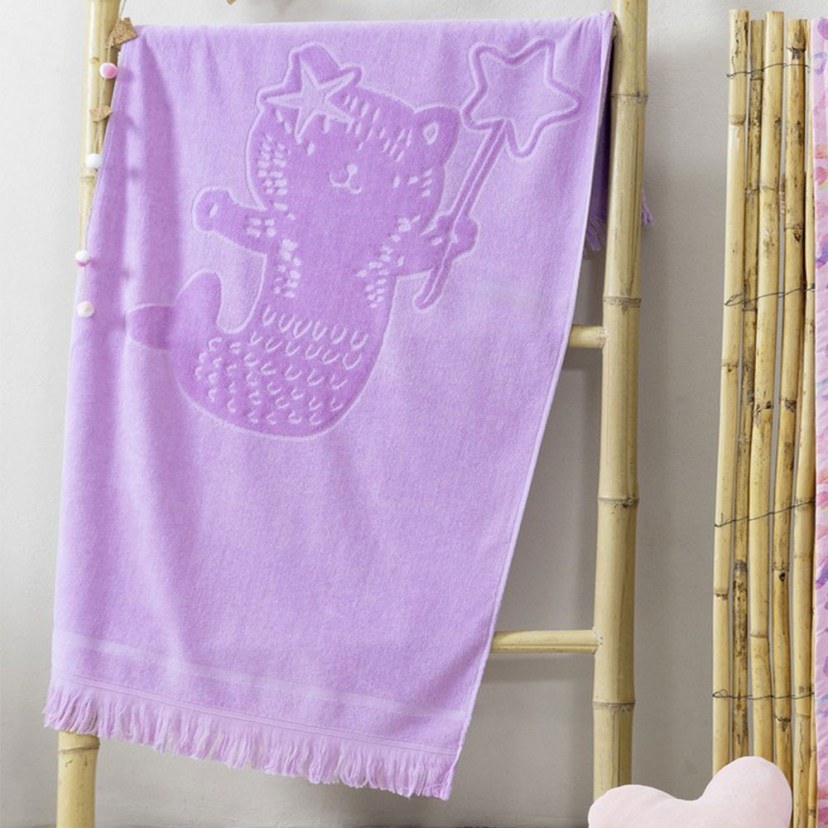 Give your child the most magical summer experience with the Kira Jacquard Children's Beach Towel! With a hypoallergenic, child-friendly composition of 100% cotton with a luxurious velor treatment and jacquard weave, it combines softness, absorbency and high durability. The fantastic cat-mermaid design in sweet hues, the playful texture and the short fringes at the ends create a dreamy effect that will delight any little beach explorer.