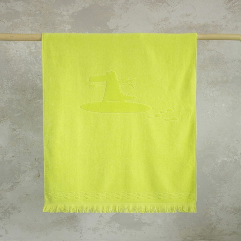 The highly playful design with the surfing crocodile will delight your child! So make the beautiful Children's Surfing Beach Towel yours now! It is an impressive towel, made of high-quality jacquard cotton threads with a special velour treatment, which makes it incredibly soft and absolutely friendly to your child's sensitive skin. The inner side is even more absorbent thanks to its towel texture. Quality: 100% Cotton, Velour Jacquard Dimensions: 1 Towel: 70x140 cm