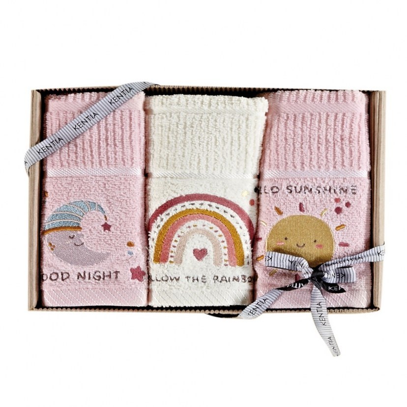 The Baby Towel Set 231 includes three towels, which are decorated with cute embroideries and are available in the trendiest shades. They are made of cotton threads that make them soft, absorbent, and resistant to use and washing. Thanks to their size, they can be used at home as well as in the nursery. Quality: 100% Cotton, 360gr/m² Dimensions: 1 Towel Set: 3 Towels: 40x70 cm