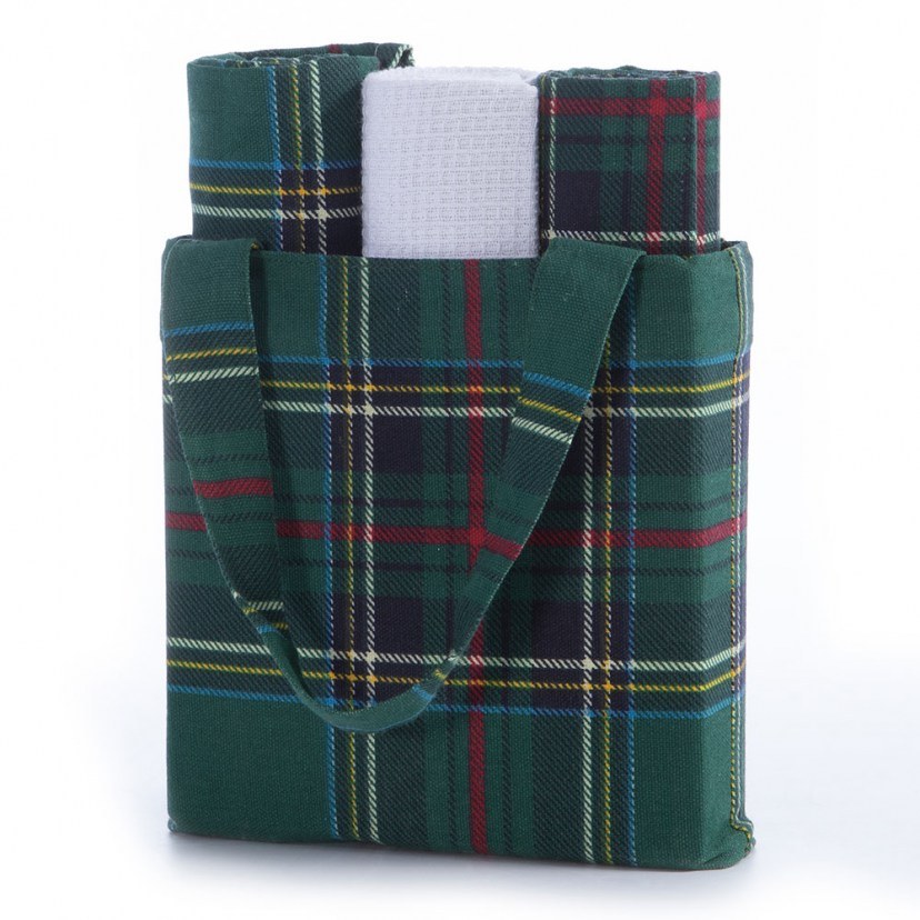 The Santa Basket Christmas Kitchen Towel Set (4pcs) In A Bag was designed with practicality in mind to bring a festive mood to your kitchen. The beautiful colors and checkered pattern create a pleasant and timeless Christmas atmosphere. It has a cotton composition that offers softness, durability and absorbency. The set includes three towels and comes in a beautiful bag.