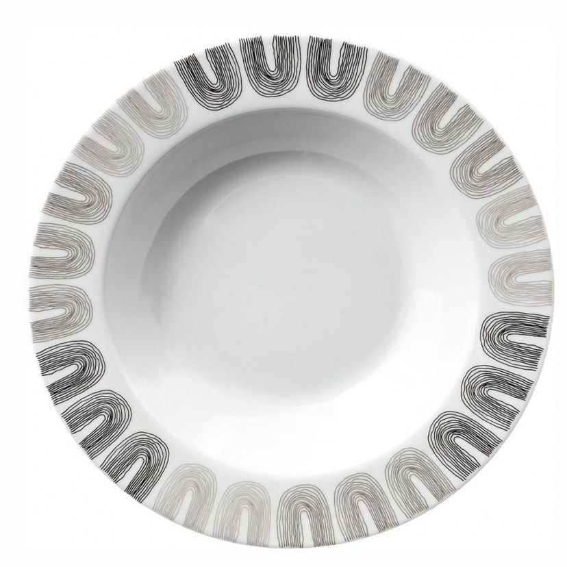 The R2609-085 Platter has a beautiful design around the perimeter, which gives a sense of elegance and finesse to your table. It is a beautiful dish, which is ideal for serving soup, pasta, etc. Made of quality porcelain, it is extremely durable and ideal for everyday use. It is dishwasher and microwave safe, offering easy maintenance and practicality.