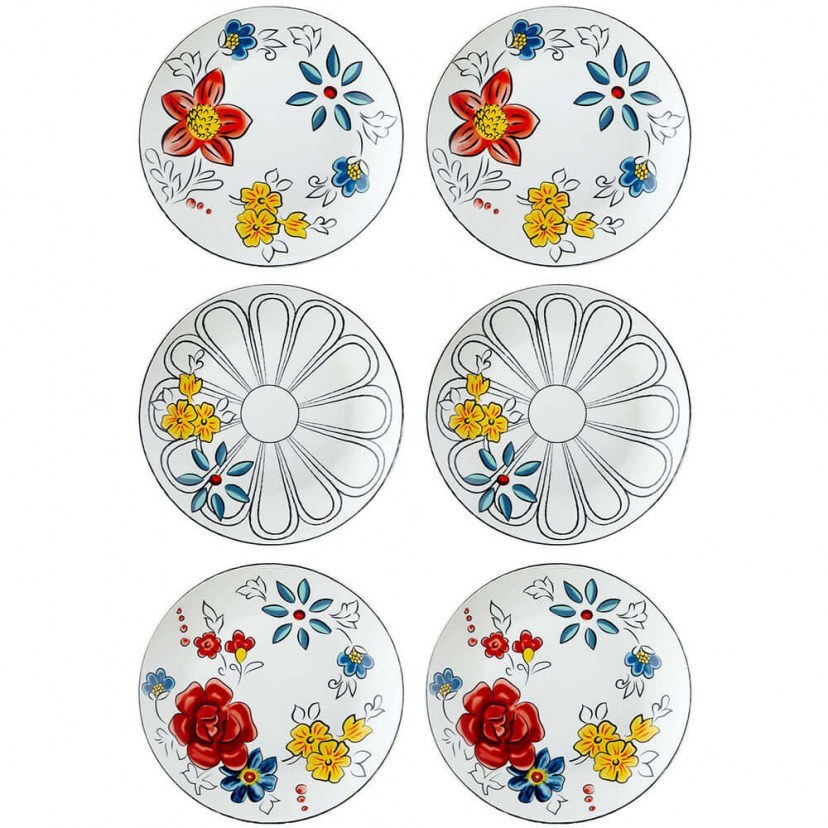 1 Σετ Πιάτα Γλυκού: 6 Τεμάχια: Διάμετρος: 20 cm, Ύψος: 2 cm