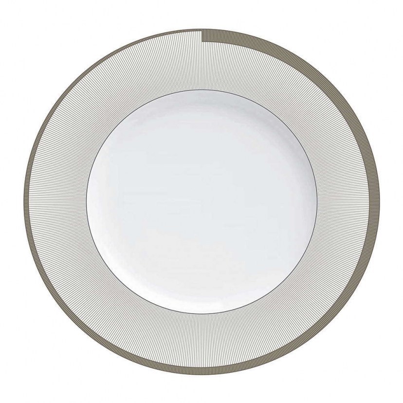 The renowned house Cryspo Trio has designed and created specifically for those who love luxury in every moment of their lives, the 'Shallow Plate Carmen 43.7886.01'! It is a beautiful plate with linear platinum details, exuding sophisticated aristocratic luxury. It is made of high-quality porcelain, making it durable over time and use.