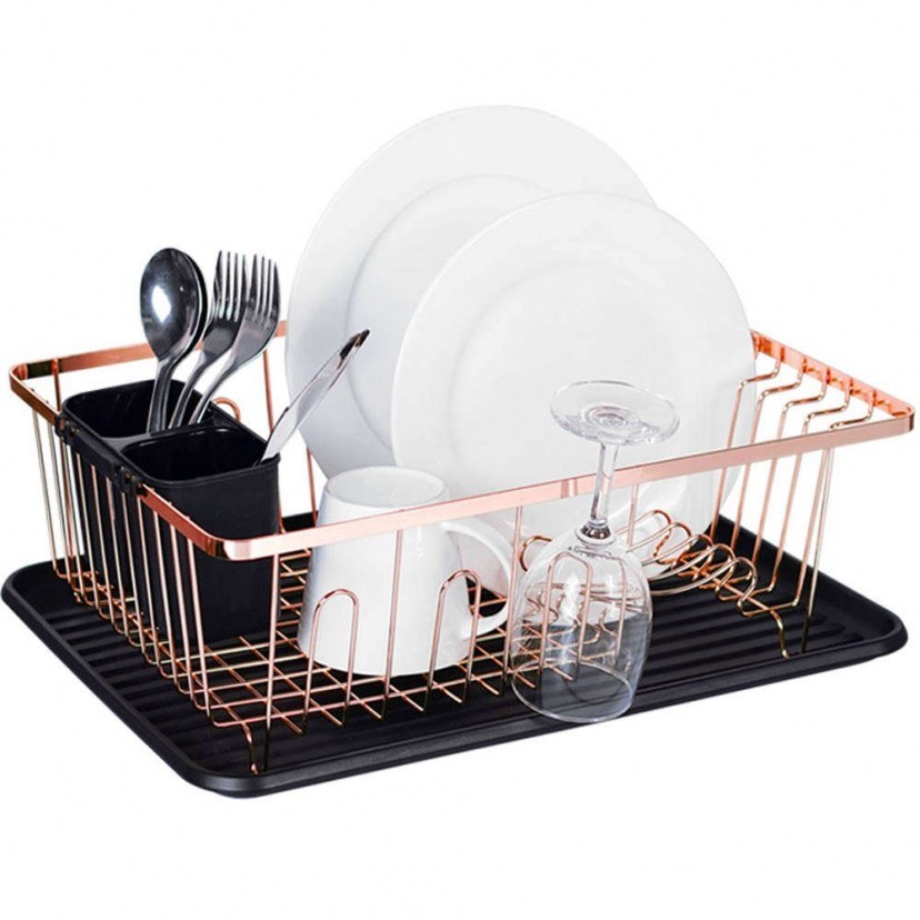 The Dish Rack 800322 will help you organize your kitchen. It has an elegant design that will beautify your kitchen. It is made of metal and has a plastic tray and compartments for cutlery. Make it yours with a click on designdrops and you will be completely satisfied. Quality: Metal & Plastic Dimensions: 1 Dish Rack: Length: 43 cm, Width: 32 cm, Height: 14.5 cm