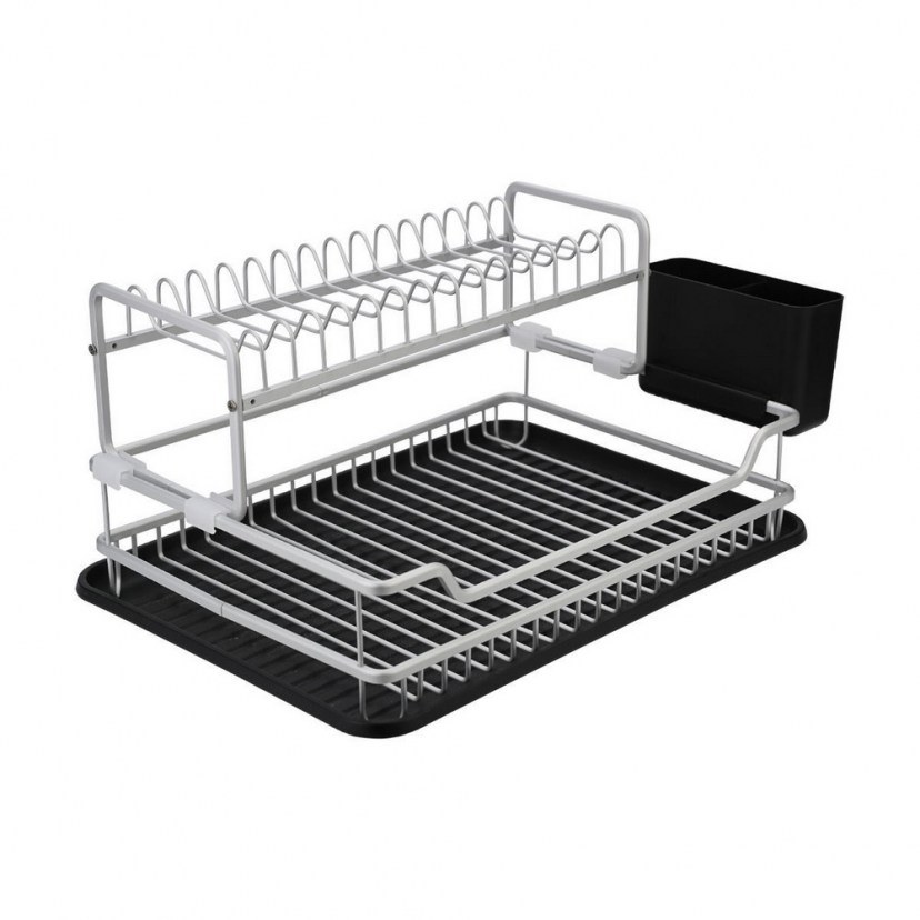 The Double Storey 01-25922 is a great choice for organizing your kitchen. It has two levels, providing more space to place your plates, glasses and cutlery. Its high-quality aluminum construction offers durability. The plate holder is equipped with a plastic base to collect the water, offering practicality and cleanliness during use. With the double cutlery holder, you will have all your utensils organized, while the two flat positions allow you to comfortably arrange your dishes without taking up all the available space. .