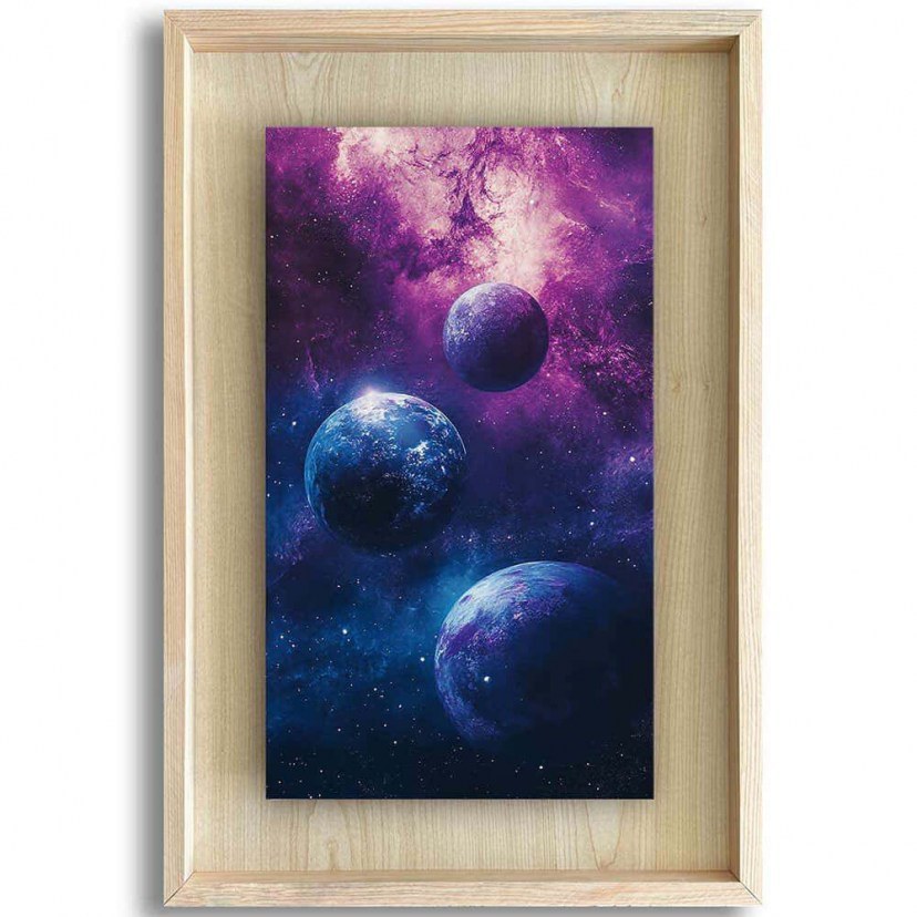Ο Πίνακας Ahsakca 870CHS1147 προσδίδει μια αίσθηση μυστηρίου και απεραντοσύνης στον χώρο σας, απεικονίζοντας το επιβλητικό μεγαλείο του διαστήματος. Η προηγμένη τεχνολογία UV printing πάνω στην επιφάνεια MDF αναδεικνύει με μοναδική ένταση τα κοσμικά χρώματα και τα ουράνια σώματα, ενώ το φόντο από σφένδαμο MDF προσφέρει μια ζεστή, γήινη αντίθεση που εξισορροπεί το ψυχρό σκοτάδι του σύμπαντος. Η στιβαρή ξύλινη κορνίζα πλαισιώνει ιδανικά τη σύνθεση, δημιουργώντας ένα διακοσμητικό αποτέλεσμα υψηλής αισθητικής που ταξιδεύει το βλέμμα και αναβαθμίζει κάθε σύγχρονο δωμάτιο ή γραφείο.