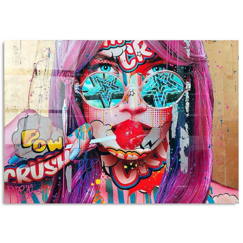 The Glass Painting 123BZM2211 combines the charm of a sexy female figure with the intense aesthetics of Pop Art, offering a modern and explosive feeling to your space. The design represents the female form with various pop art details throughout her body, such as bold letters, bright colors and characteristic patterns that exude dynamism and imagination. It is made of tempered glass, i.e. a high-quality material, which ensures long-term durability and high quality. The special treatment of the glass makes it able to withstand impacts and offers safety and reliability, making it suitable for your home or business.
