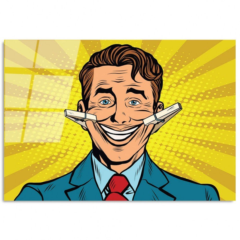 The Glass Board 123BZM2229 is a subversive and humorous addition to your space, with a design inspired by the world of comics. The design depicts a man smiling broadly, thanks to two pegs pulling his cheeks, offering an image full of humor and imagination. The bold lines and vibrant shades of the comic give the board a playful and youthful feel, perfect for contemporary living rooms, offices or personal spaces that exude creativity. It is made of tempered glass, i.e. a high-quality material, which ensures long-term durability and high quality. The special treatment of the glass makes it able to withstand impacts and offers safety and reliability, making it suitable for your home or business.