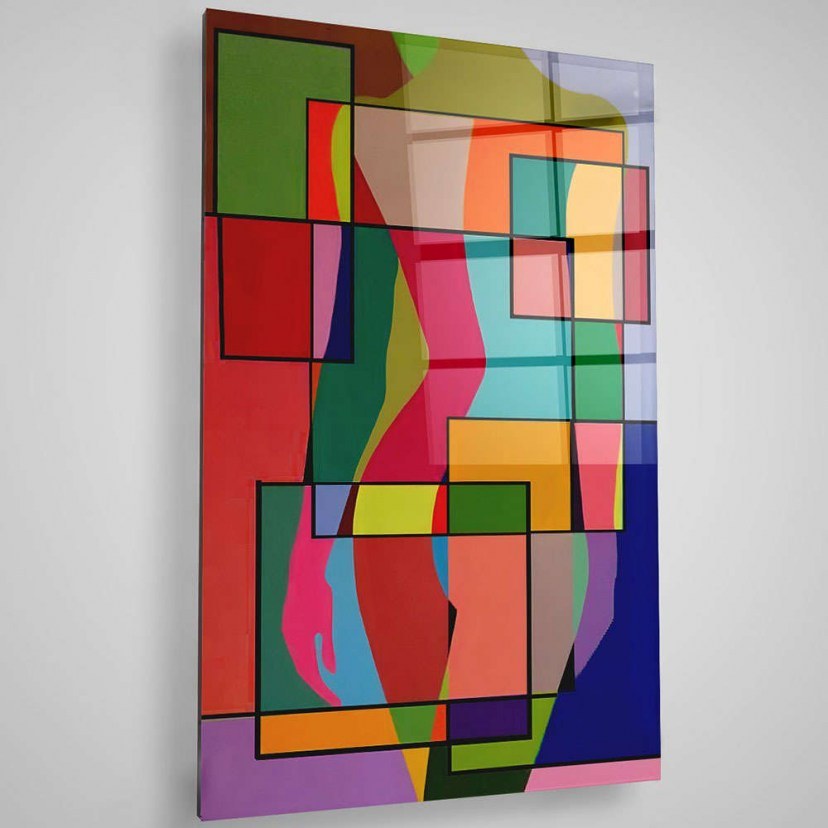 Glass Painting 401MGN3443 features an abstract design that creates a female figure with geometric influences and vibrant colors. The painting incorporates geometric elements, which give a modern and structured dimension to the work. The color palette is intense and lively, lending dynamism and energy to the figure. It is made of tempered glass with a thickness of 4 mm, which ensures its longevity and durability, keeping its beauty unchanged over time. Quality: