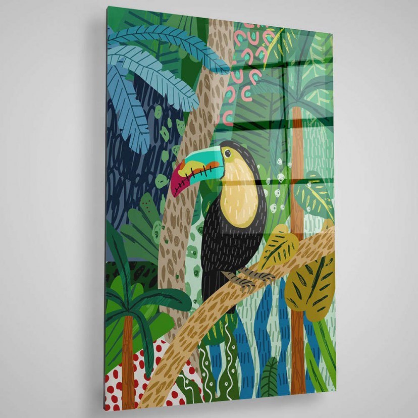 Enter a world of dreamy tropical scenery with the Glass Painting 401MGN3508, depicting a dazzling scene of dense vegetation and a magnificent toucan as the centerpiece. The lush tropical landscape creates a sense of exotic beauty and tranquility, bringing the visitor into a world of total relaxation. Vibrant colors and detailed imaging create a compelling visual experience. The gorgeous board is made of 4mm thick tempered glass, which ensures longevity and durability, keeping its beauty unchanged over time. Quality: