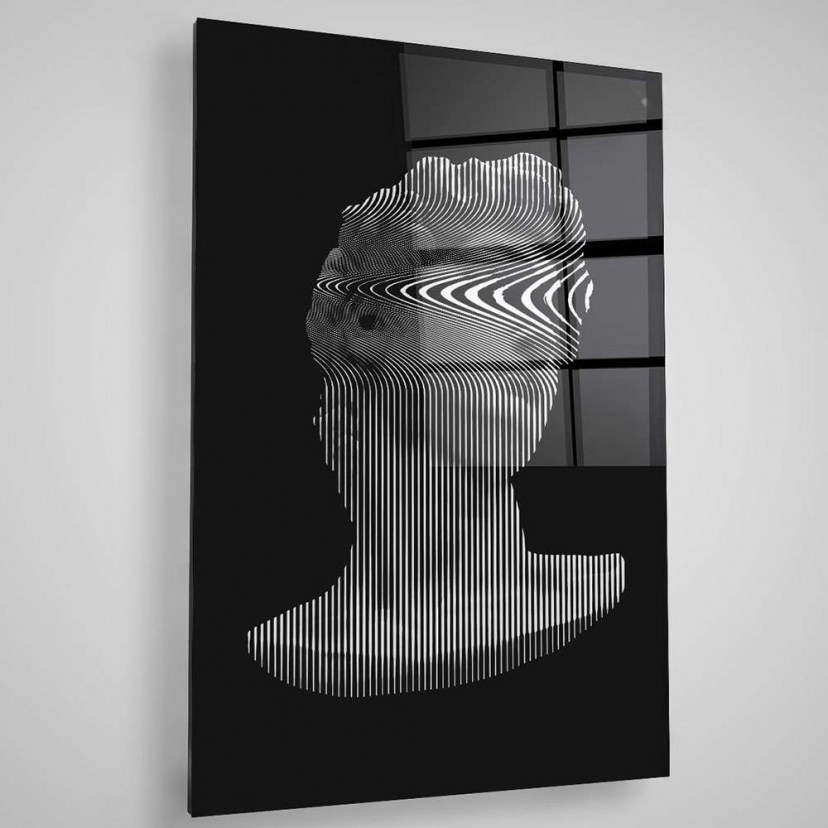 Glass Painting 401MGN3521 uniquely captures a male statue face on a dark background, offering a sense of mystery and seriousness. The distinctive design highlights the detail and strength of the form, creating a strong visual impact. Made from tempered glass with a thickness of 4 mm, it ensures unparalleled durability and strength, ensuring that the work will stand the test of time. The UV Printing technology used for the details of the design offers vivid colors and precision, bringing the painting to life in a unique way.