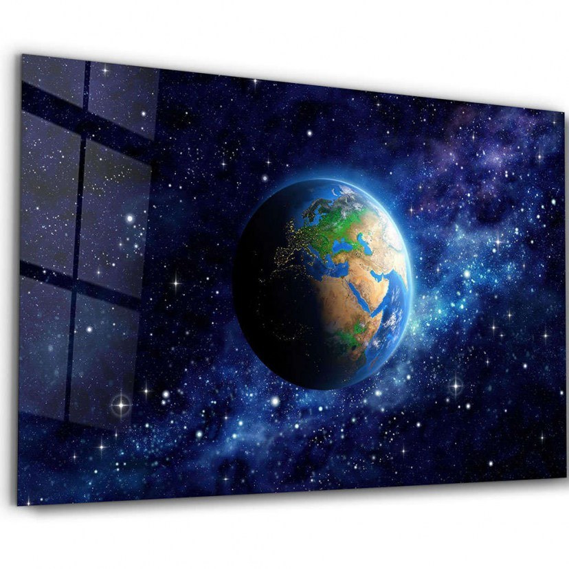 The Glass Plate 672BRS2236 depicts the planet Earth floating in the vast and starry black of the universe, creating an impressive and mysterious atmosphere. Made of 100% tempered glass, this panel ensures long-lasting durability and safety in your space. The 4mm thickness offers extra protection as the tempered glass shatters into small, harmless pieces if broken.