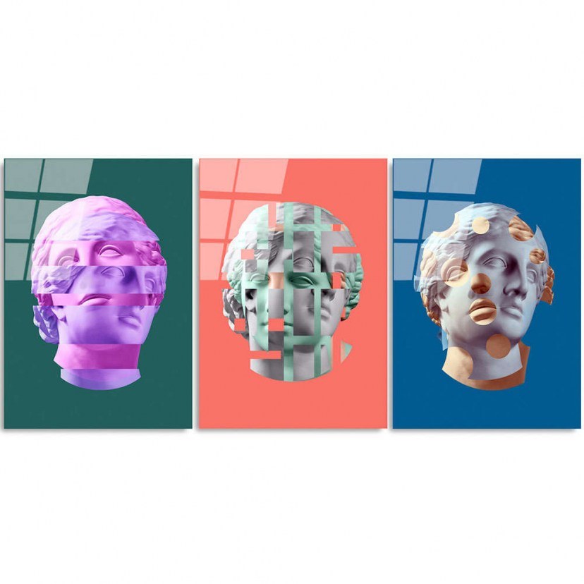 The 123BZM2371 Painting Set includes three impressive paintings that represent busts of statues in a special way, creating a unique art composition for your space. Each painting renders the busts in exquisite detail, combining classical art with contemporary aesthetics, capturing the art of statuary in an innovative way. They are made of tempered glass with a thickness of 4 mm, which ensures unparalleled durability and beauty. The UV Printing technology used for the details of the design offers vivid colors and precision, bringing the painting to life in a unique way.