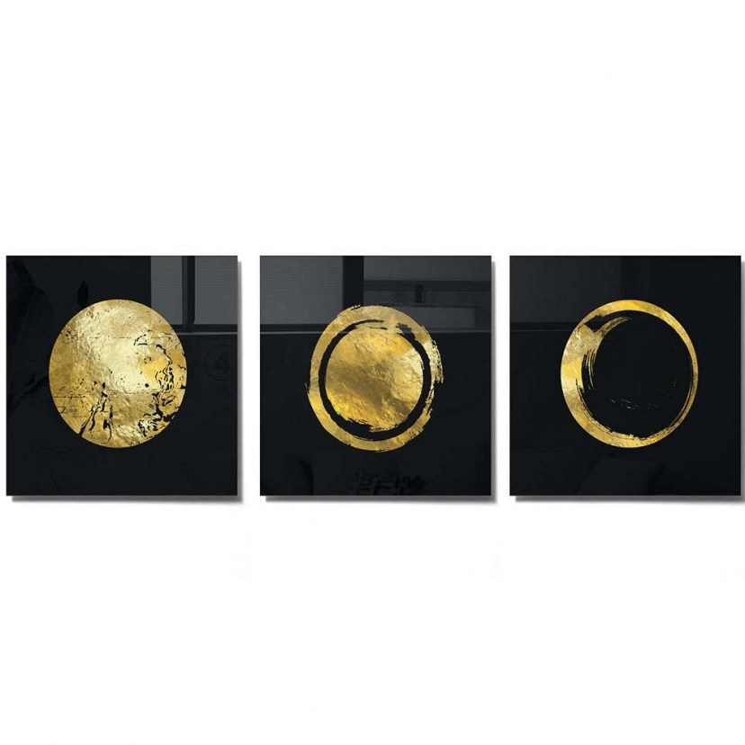 The Painting Set 698GLS1287 includes three paintings depicting circular golden shapes on a dark background, creating a sense of elegance and luxury. The circular motifs with golden hues are enhanced by the dark background, giving depth and dynamism to the painting. The design's contemporary aesthetic combines simplicity with the sophisticated feel of gold, making it ideal for adding style and elegance to any space. They are made of tempered glass with a thickness of 4 mm, which ensures unparalleled durability and beauty. The UV Printing technology used for the details of the design offers vivid colors and precision, bringing the painting to life in a unique way.