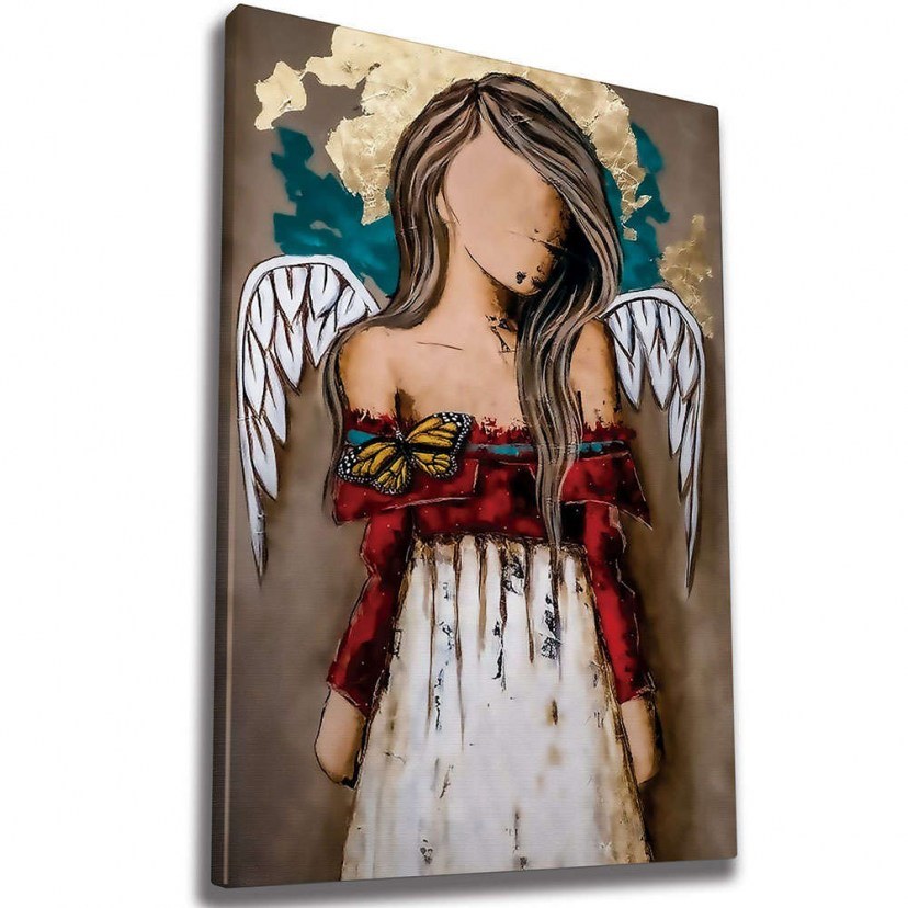Canvas Painting 227WRZ1205 depicts an abstract painting with a female angelic figure. This painting can be interpreted in various ways depending on the viewer's mood and interpretation. The female angelic figure can represent beauty, love, innocence or freedom, while the featureless face can lend an air of mystery and abstraction to the painting. This is a painting digitally printed on high-quality canvas, ensuring vivid colors and intricate details that bring out the character of the work. It features a durable 2x3 cm thick wooden frame, adding a touch of elegance and ensuring the project's longevity. This canvas painting is sure to become the focal point of your space, leaving a lasting impression on all who enjoy it. Quality: