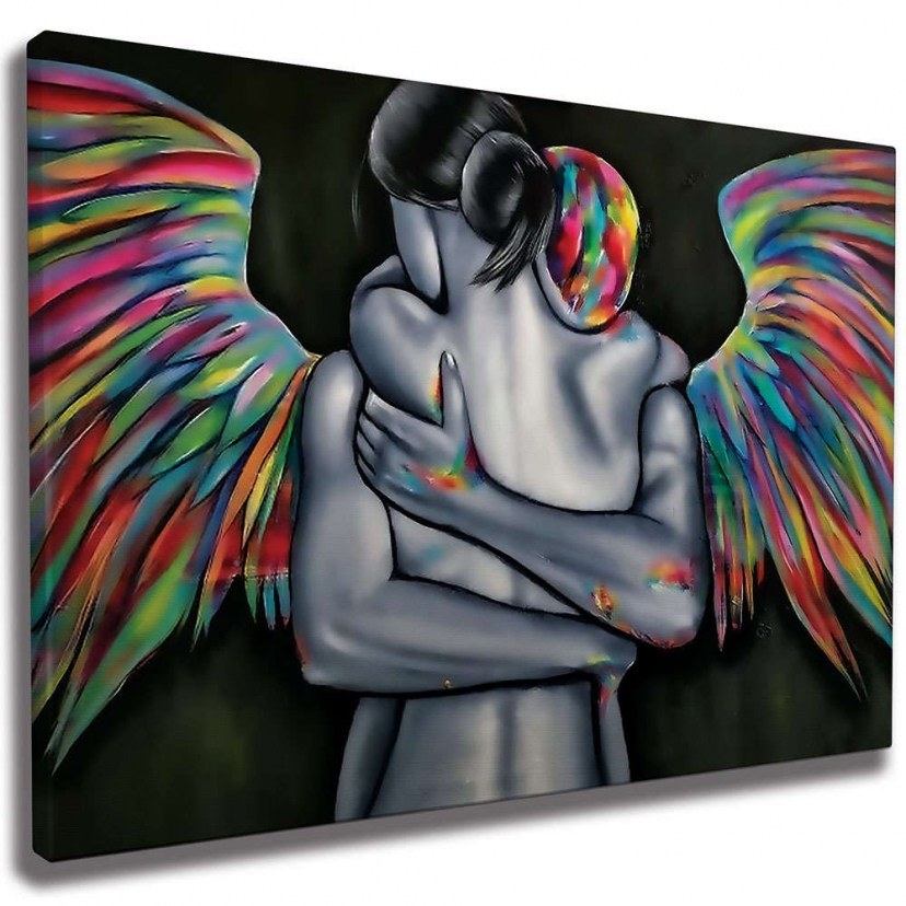Discover the ultimate feeling of protection and love through the Canvas Painting 227WRZ1228, inspired by the famous work 'Guardian Angel' by Natmir Lura. In this unique painting, the feeling of a woman's warm embrace meets the mysterious beauty of an angel, who brings with him color and light through his colorful wings. This is a painting digitally printed on high-quality canvas, ensuring vivid colors and intricate details that bring out the character of the work. It features a durable 2x3 cm thick wooden frame, adding a touch of elegance and ensuring the project's longevity. Quality: