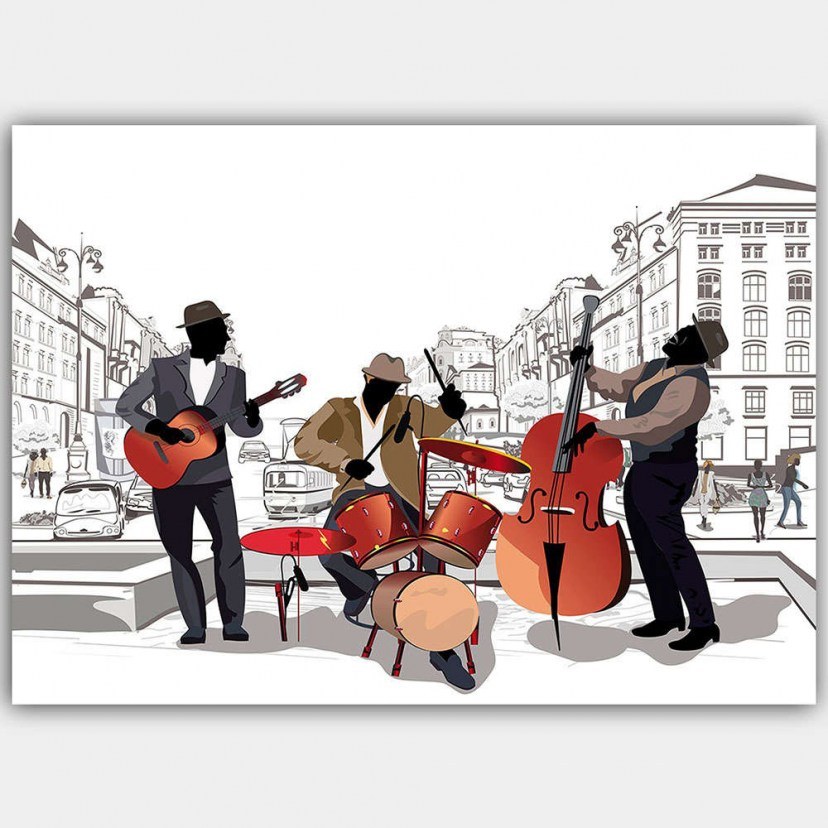 Canvas Painting 441HPE2148 depicts a live band of street musicians playing jazz music, capturing the intensity and joy of the moment. The musicians, with their instruments, embody the atmosphere of urban life and the freedom of music, creating a dynamic and energetic image. The painting exudes a sense of authenticity and jazz rhythm, while the vivid touches and color contrasts enhance the atmosphere of intense musical expression. Made from high-quality canvas, it ensures long-lasting durability and fade resistance, while the 3cm thick wooden frame offers extra stability and durability.