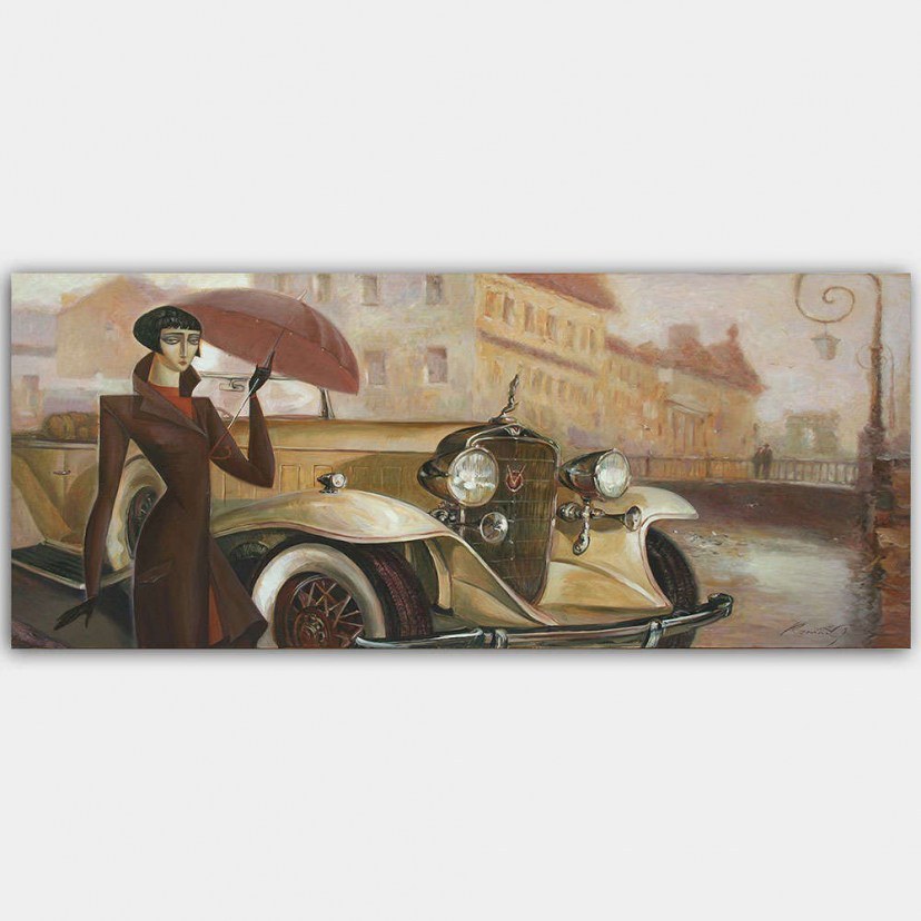 Discover the charm of the past with the Canvas Painting 451ERN1682! This unique representation of an antique car and a female figure with an umbrella adds a sense of nostalgia and elegance to any space. Made of high-quality canvas, this painting ensures durability and long-lasting use. With vibrant colors and intricate details, it transports you to a world of beauty and creativity, inviting you to escape from everyday life and immerse yourself in art. The table is framed with a wooden frame, providing sturdiness and stability.