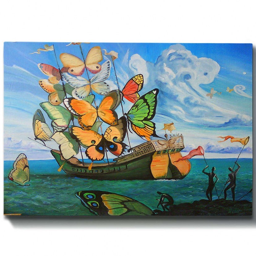 Bring the magic of Salvador Dali into your space with the A Ship With Butterfly Sails Canvas Painting 529TCR1601. This unique work of art depicts a rich imagination, combining the aesthetic of Dali with the symbolism of butterflies. The painting highlights a ship with sails made of butterflies, creating a world of dreamy beauty and fantasy. With Dali's bold color contrasts and strange compositions, this painting will add a unique aesthetic to any space. The painting is made of high quality canvas, ensuring vivid colors and durability. The 3 cm thick wooden frame offers stability and ease of installation. Quality: