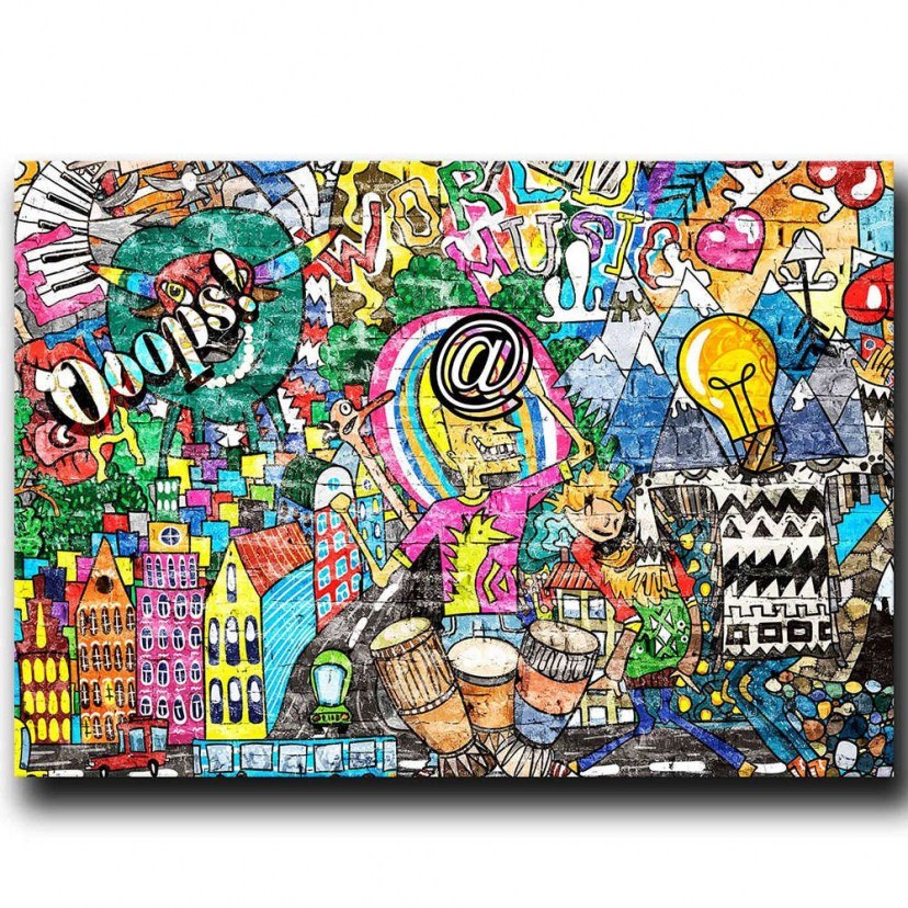 Discover street art with Canvas Painting 649THL1148! The colorful and eccentric design, inspired by graffiti, will bring a sense of energy and dynamism to your space. Meticulously crafted from canvas, this painting ensures exceptional durability and long-lasting enjoyment. Vibrant colors and intricate details highlight the uniqueness of each piece, making it stand out as a true work of art. Its base is made of wooden material, providing sturdiness and reliability. With a thickness of 2.8 cm, the work gains depth and dimension, offering a visually striking effect that will catch all eyes.
