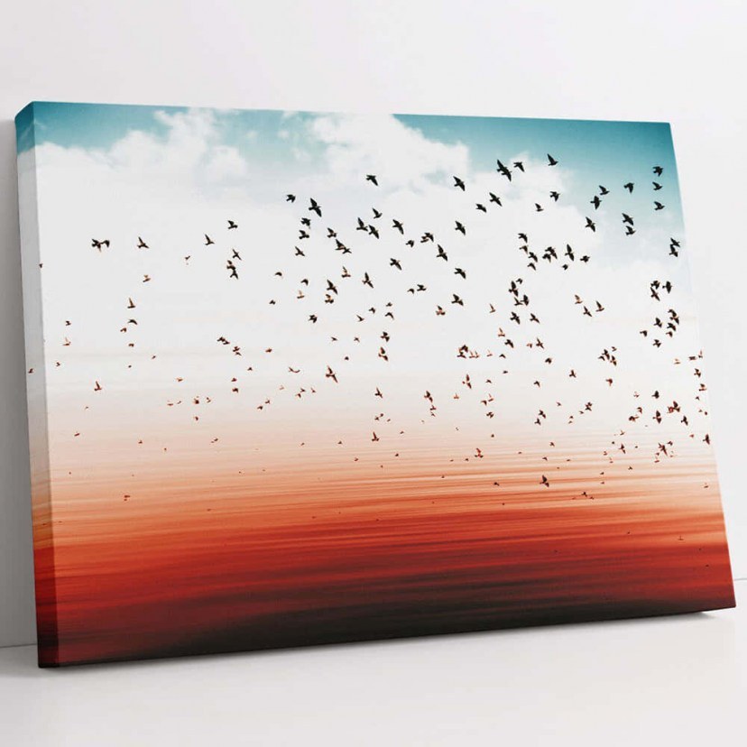 Ο Πίνακας Καμβάς 651MRT1309 αποτυπώνει έναν ουρανό γεμάτο με πουλιά που πετούν ανέμελα, δημιουργώντας μία αίσθηση ελευθερίας και γαλήνης. Τα πουλιά, με την ελαφριά και χαλαρή πτήση τους, προσδίδουν στον πίνακα μία αίσθηση ηρεμίας και σύνδεσης με τη φύση. Κατασκευασμένος από υψηλής ποιότητας καμβά, αυτός ο πίνακας αναδεικνύει με τον πιο όμορφο τρόπο τις προσεγμένες λεπτομέρειες και τα χρώματα.